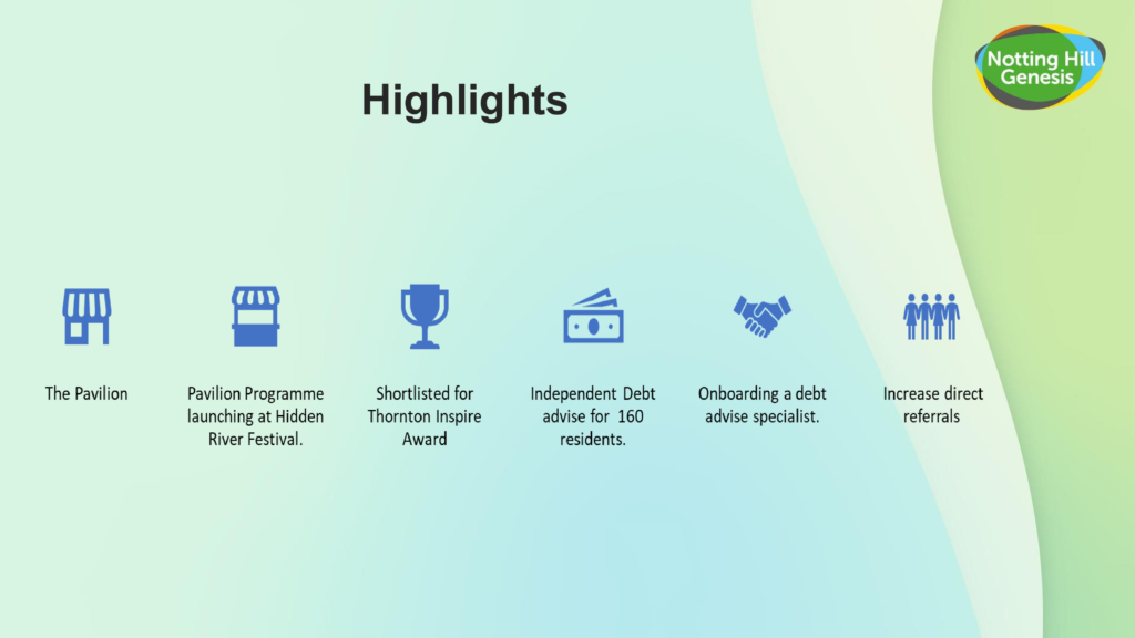 In addition, NHG’s partnership with Citizens Advice has provided independent debt advice to 160 residents and recruited a specialist debt advisor to the CAB to deepen support.
